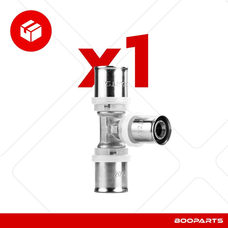 BOOPARTS Mehrschichtverbinder, 20 – 16 – 20 mm, Crimpen, mehrschichtiges T-Stück, reduziert zum Crimpen – Verbindungsstück für mehrschichtige Rohre 20 und 16
