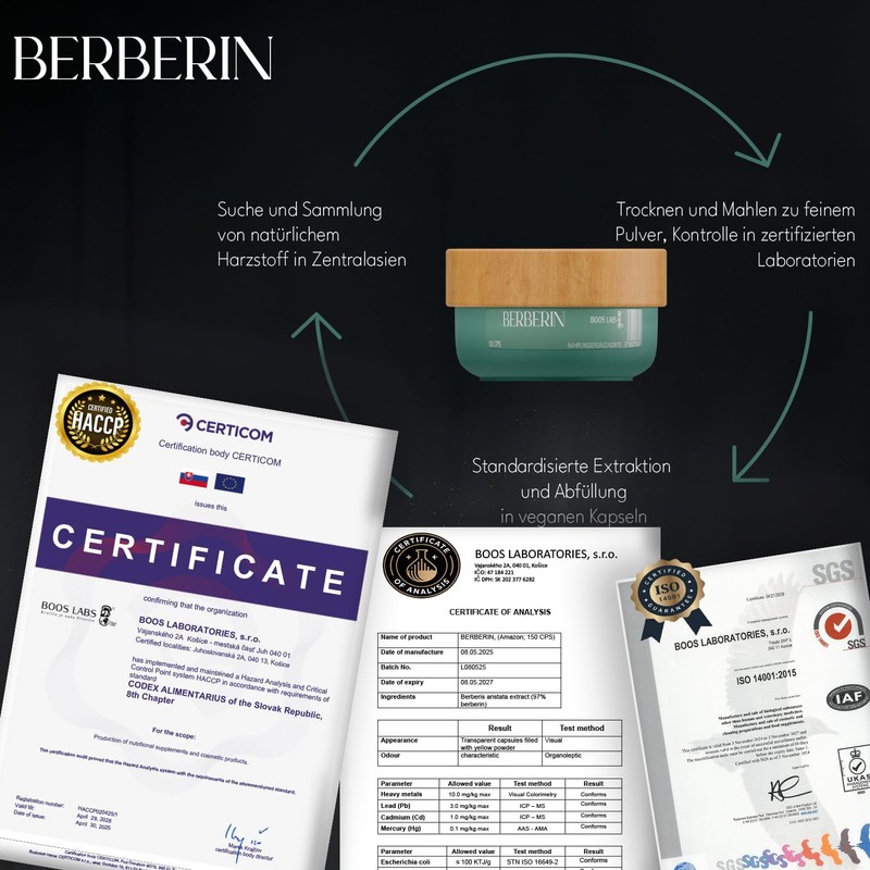 - Unsere Berberin versorgt den K?rper mit der maximal zul?ssigen Tagesdosis in ein Kapsel, um die Ergebnisse zu optimieren. Alle erstklassigen und gesunden Inhaltsstoffe werden in unseren Labors getestet und entsprechen stets hohen Qualit?tsansprchen.