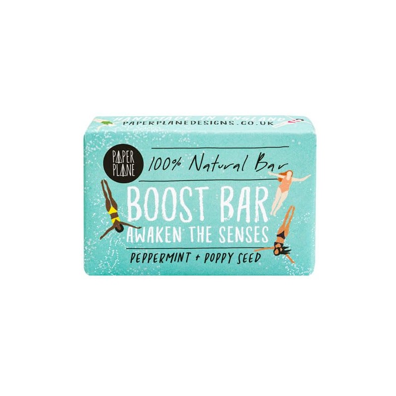 A 100% natural soap bar that's a perfect gift for anyone in need of a bit of a boost. This 100% natural, vegan bar is scented with peppermint, a naturally uplifting scent to help you wake up. It contains poppy seeds - a natural exfoliant - making the bar an especially luxurious gift. Also available to purchase with our matching pulse point roller ball oil for a thoughtful gift set. The packaging is fully biodegradable. No palm oil. No sulphates. No triclosan. No phthalate. No cruelty. No worries. Check out our other items for more vegan, 100% natural soaps and shampoos. Bar 95g minimum - each bar is hand-cut, so there may be some slight differences.