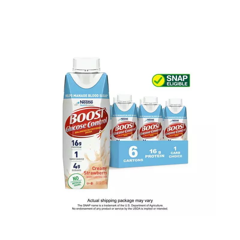 Boost Glucose Control Assorted Nutritional Drink 8 Oz, 3 Flavors, 6 - 24 Count  - Creamy Strawberry - 6 Count