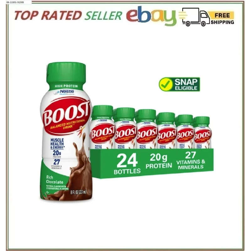 - 24 pack of 8 fl oz bottles of BOOST High Protein Rich Chocolate Nutritional Drink