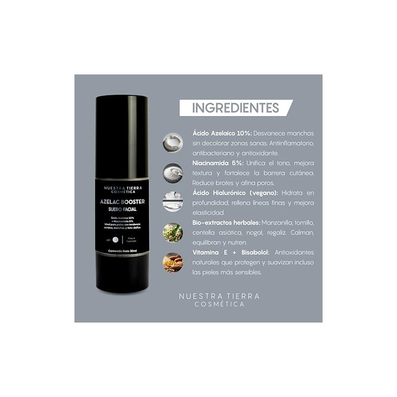 Nuestra Tierra - Booster Azelaico 10% + Niacinamina 5% Combate melasma y manchas rebeldes. ✅ Diseño innovador que supera las expectativas. Materiales de alta gama y acabados premium. 💎 Calidad superior certificada. Ideal para quienes buscan lo mejor en calidad y estilo. Producto auténtico con satisfacción total asegurada. ¡No te quedes sin el tuyo y aprovecha esta oportunidad única!