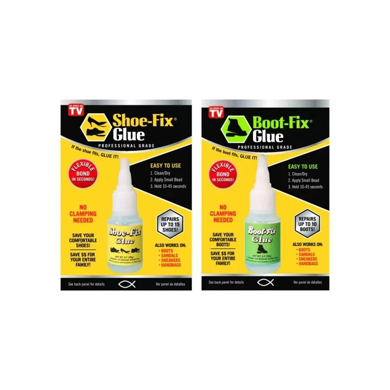 Boot-Fix is a super glue (cyanoacrylate) that is specifically formulated for the shoe repair industry. We know because we’ve been using this type of glue in our shoe repair shops for almost 30 years now and we think we’ve found the best formula yet! Boot-Fix Glue is the strongest footwear adhesive that works on all different types of shoe materials. What makes Boot-Fix Glue different from your average super glue? Boot-Fix remains flexible after it dries so it doesn’t just break apart again when the footwear is worn. Also, it’s viscosity has been specifically formulated to bond to the types of materials used to manufacture footwear these days. Unlike other shoe glues, Boot-Fix doesn’t require clamping for most repairs. It’s ready to go in minutes, not hour or even days. Boot-Fix Glue is completely waterproof and it’s designed to hold even in the blistering summer heat, or icy cold of winter. Whether you need to glue your boots for a hard day's work, a tough day of training, or just a walking around the office, Boot-Fix Glue can repair your work boots, athletic sneakers, rubber soled dress shoes, and much more!. As my dad used to say “If the shoe fits, Glue It!”