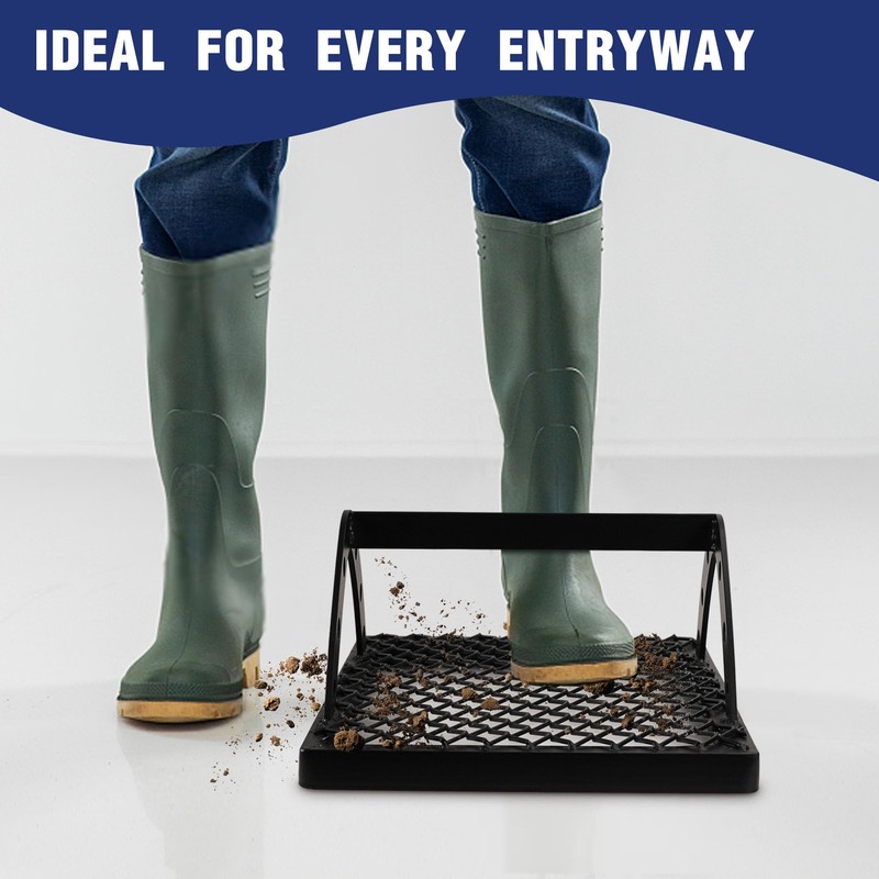This durable boot scraper is a must-have for any home. Keep dirt, mud and snow outside where they belong with this heavy-duty scraper. All Steel Construction Fully Welded Boot Scraper Made of durable heavy duty Steel Expanded Iron for added durability withstand all weather elements and can be used outdoors.Other scrapers rot and crack, ours will not.Great for construction job sites and seasonal work places. The sturdy steel construction easily removes stubborn debris from boots and shoes with just a few swipes. Place this scraper just outside your door for easy access right when you walk in. Its compact size means it won't clutter your entryway but will save you loads of clean up time. No more traipsing dirt inside on rainy or snowy days. Extend the life of your floors and rugs with this essential outdoor/indoor cleaning tool.