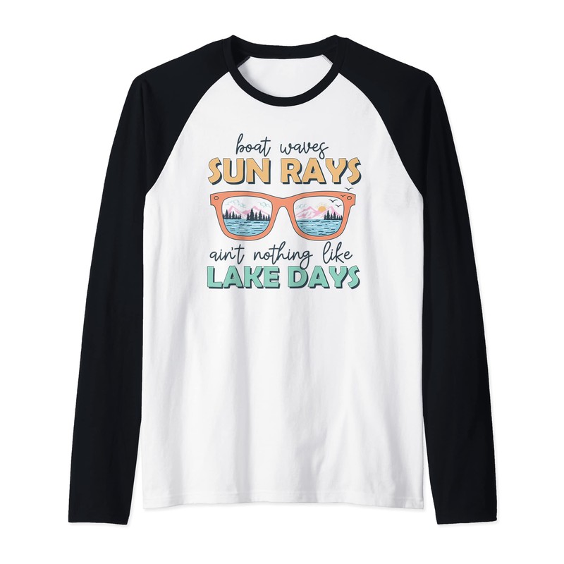 Boot Waves Sun Rays Summer Time Pontoon Boat Lake Trip Life Raglan, black