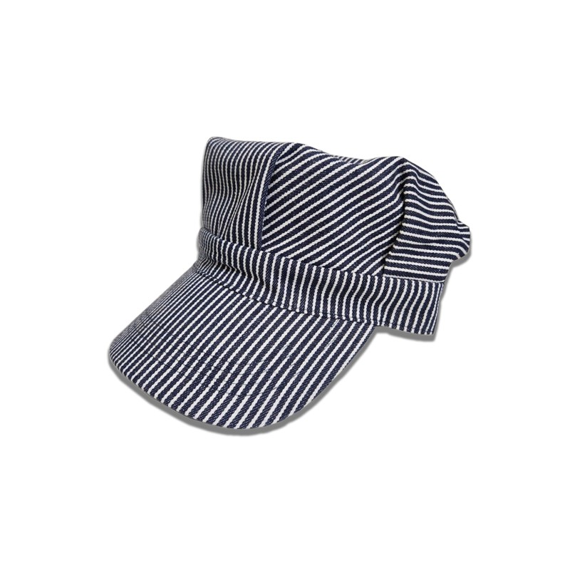 - Classic Train Engineer-style cap with a traditional blue and white, heavy hickory striped print