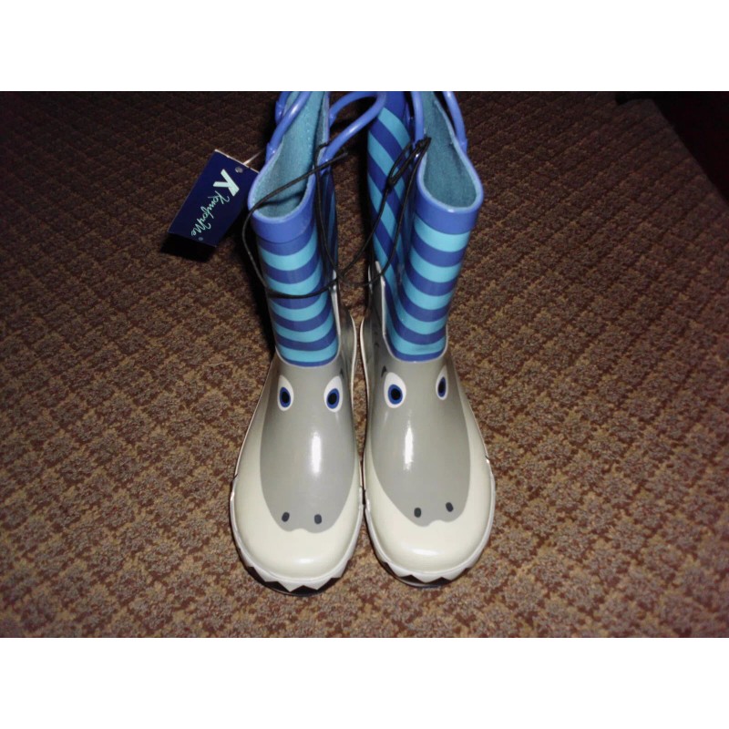 Brand new K Komfor Me BOYS size 3 SHARK waterproof rubber boots. Very cute and easy on with PULL ON STRAP HANDLES. U.S. shipping only.
