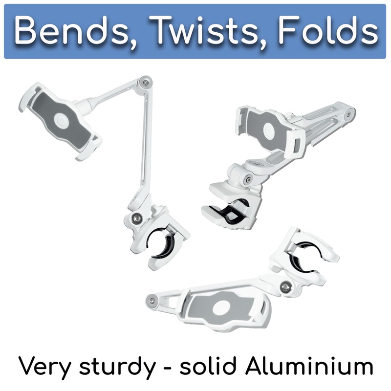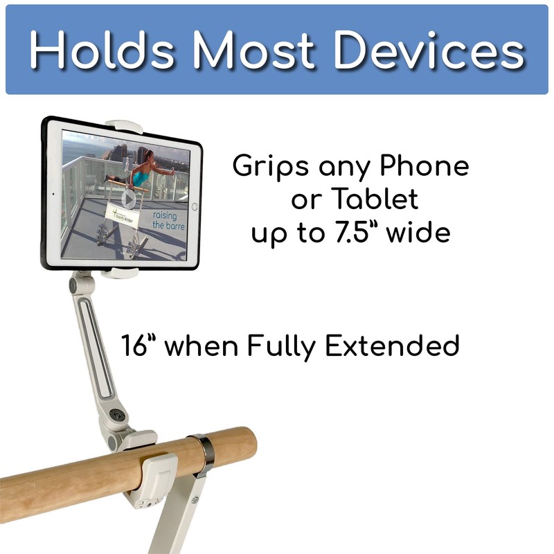 fits most phones and tablets (maximum width 7.5 inches). The sturdy, aluminum