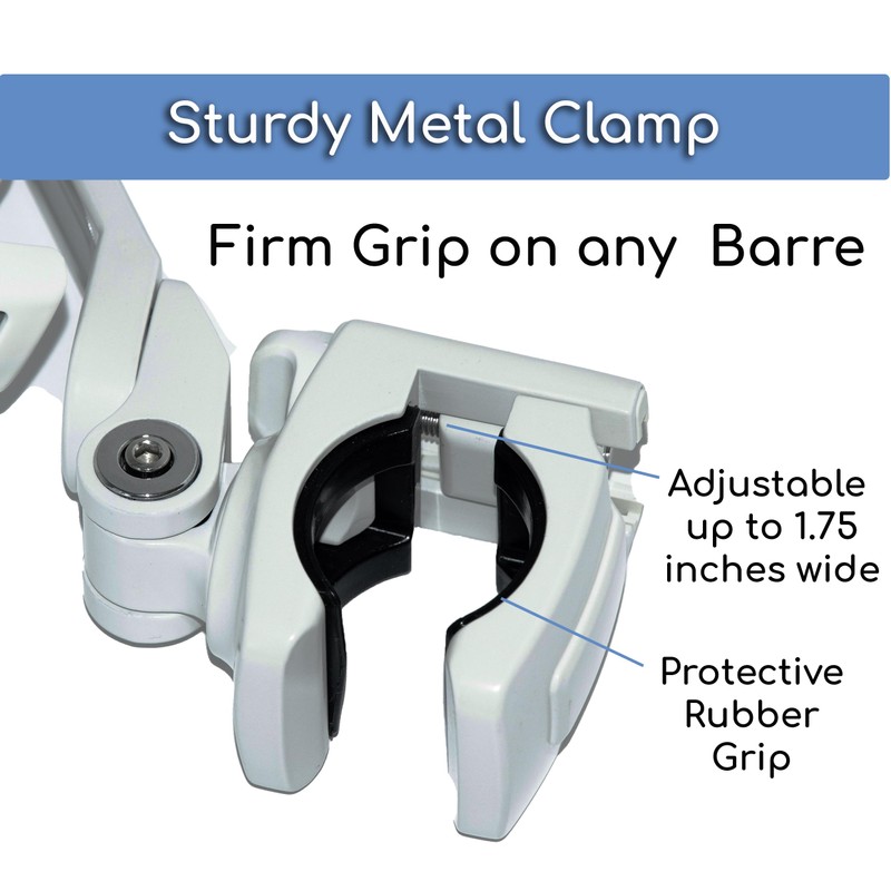 left accessible. Designed to clamp to any standard barre with a diameter of