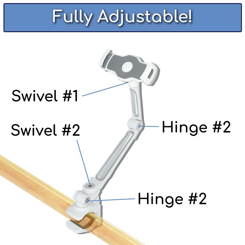 Booty Kicker Tablet Holder with Round Clamp Clamps to 1.25" - 1.75" Barre | Sturdy Metal, Stable Base | Adjusts Firmly and Securely | Compatible iPad Mini/Most Phones/Small Tablets