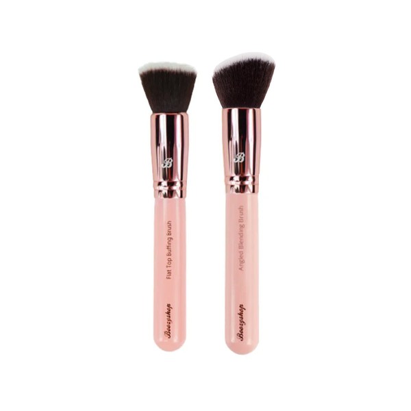 The Boozyshop Pink & Rose Gold Face Brush Duo is the ultimate makeup brush set for applying liquid foundation, contour, and blush. With the Flat Top Buffing Brush, you can easily and quickly apply your foundation and seamlessly blend it. Build up the coverage by applying multiple layers if desired. Thanks to the flat and precisely cut bristles, you can achieve a natural airbrushed effect with ease.