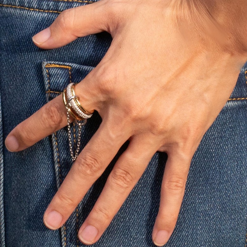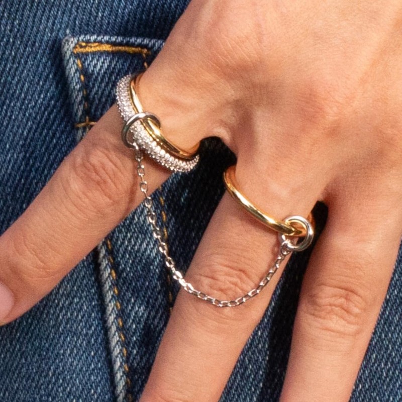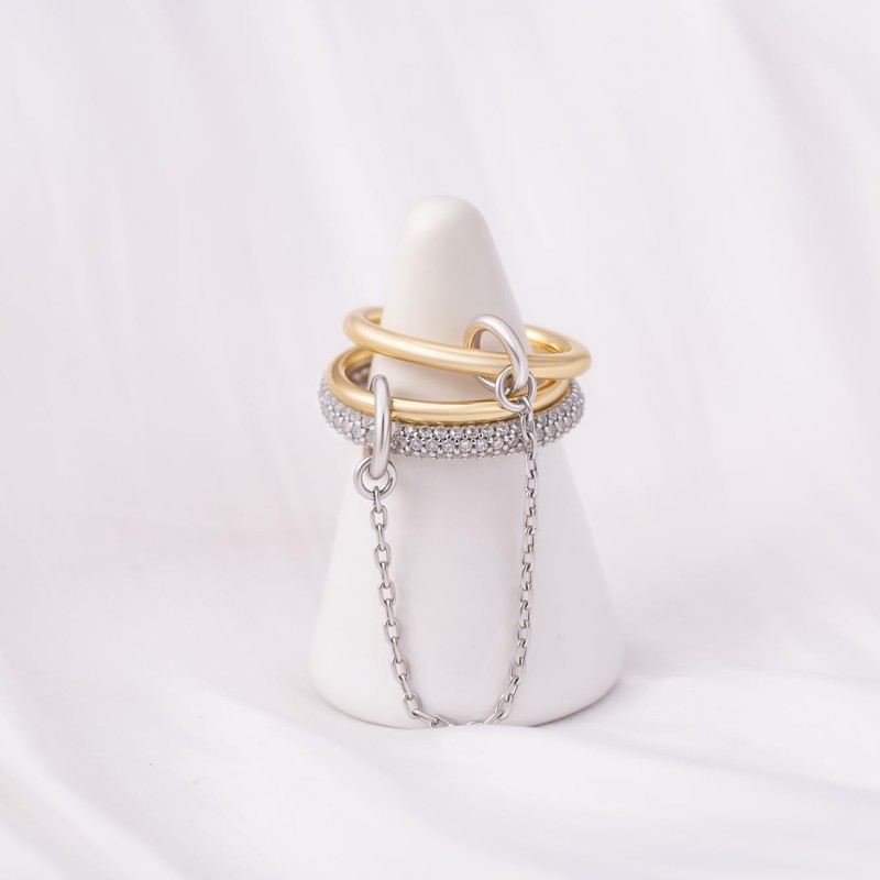 • Unique Chain-Linked Detail for Extra Sparkle - Unlike basic stackable rings, this set features a luxe gold-plated chain connecting the rings, adding movement, dimension, and a high-fashion touch. The dangling chain catches the light beautifully, making every gesture shine.
