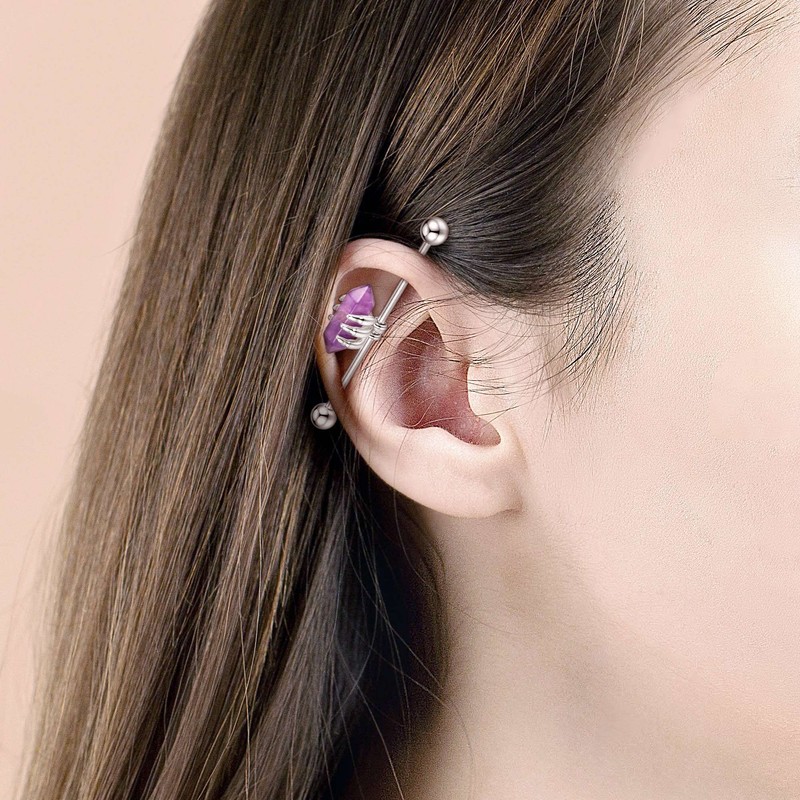 - ❤Quality Material: Industrial earrings made of 316L stainless steel, Amethyst, Blue Sandstone, Opalite and Rose Quartz, durable and hypoallergenic, completely non-corrosive, lead and nickel free, safe for sensitive skin. High polished surface, prevents damage and irritation to your piercing.