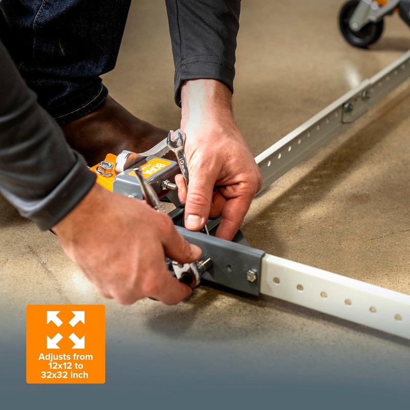 - ADJUSTABLE SIZE: Adjusts from 12 x 12 inches to 32 x 32 inches square or up to 17 x 48 inches rectangle. The stand is adjustable in 1-inch increments to fit a wide variety of machines