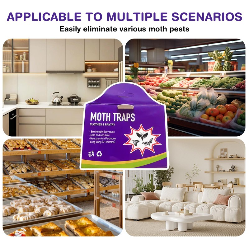 - Praktischer: Dies erleichtert die Verwendung des Produkts in komplexeren Umgebungen. Die Lebensmittelmotten Falle eignet sich für alle Räume, in denen Mottenbefall auftreten kann, wie z. B. Küchen, Kellern und Speisekammern.