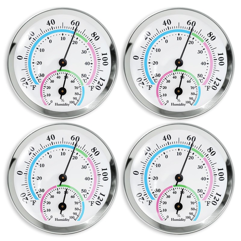 BORDEAG Pack of 4 Thermometer Hygrometer, 58 mm Analogue Thermometer, Analogue Thermometer, Hygrometer, 2-in-1 Thermometer Hygrometer Thermo-Hygrometer for Homes, Greenhouses, Gardens