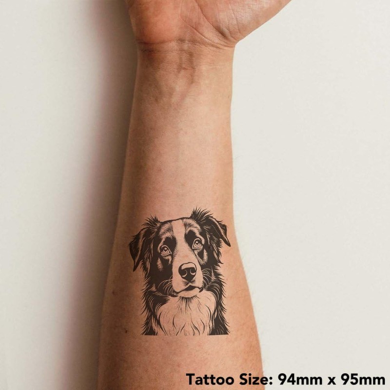 'Border Collie Portrait' Temporary Tattoo - Water Resistant, Skin-Safe, Non-Toxic Transfer (TO00080727)