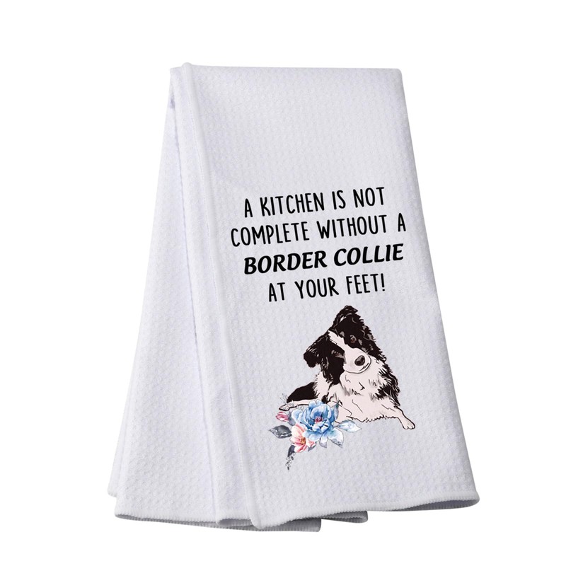 - Towel with saying:A KITCHEN IS NOT COMPLETE WITHOUT A BORDER COLLIE AT YOUR FEET! This towel will make an excellent gift for a housewarming, wedding, hostess or holiday stocking stuffer as well as many other occasions.