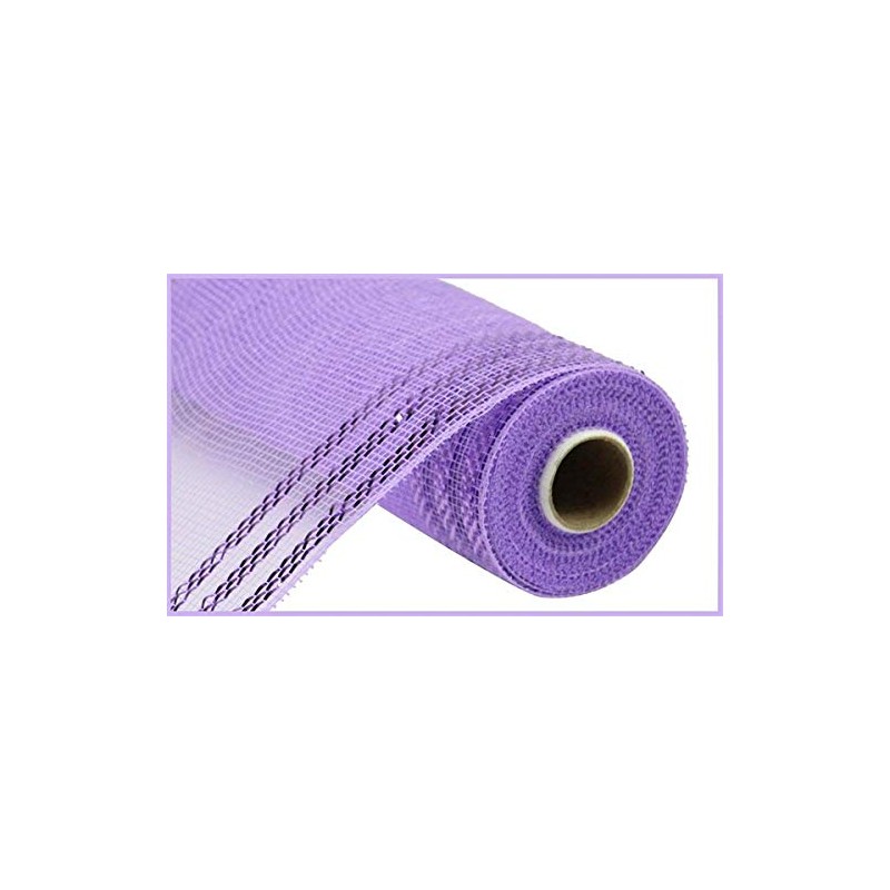 Border Stripe Metallic Poly Deco Mesh (Lavender, Lavender Foil), 10.25 Inches x 10 Yards