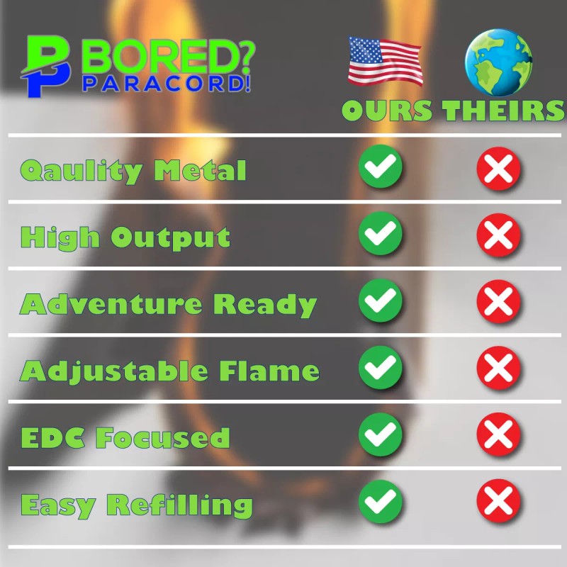 BoredParacord Metal Torch Lighter With clear reservoir, Great Gift for Dad, Brother, ETC... - Chrome