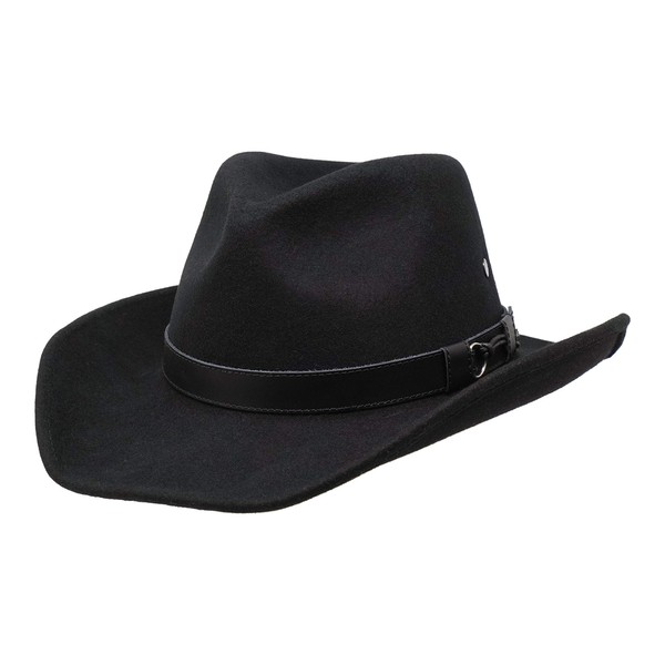 Borges & Scott Forester – Western Style Wool Felt Hat - Water Resistant – Wired Mouldable Brim - Black 56cm - (Small)