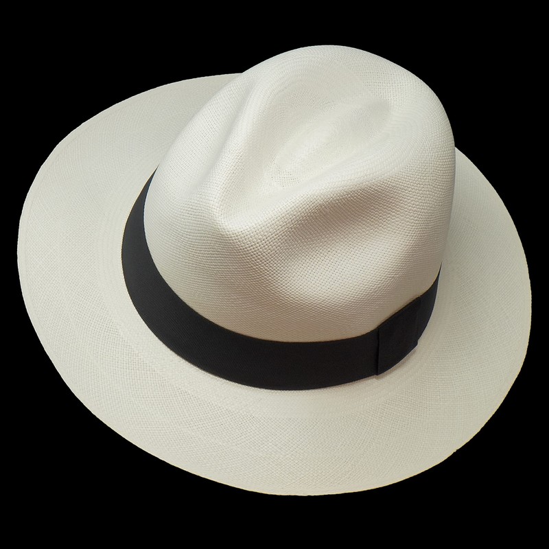 Borges & Scott The Japura - Signature Fedora Panama Hat - Rollable and Lightweight - White with Black Ribbon - 62cm
