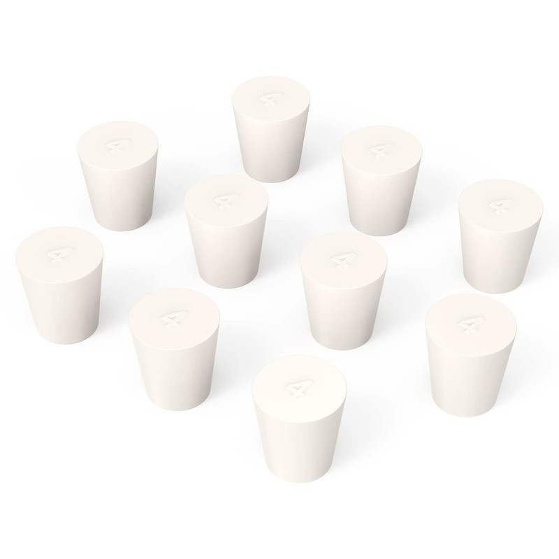 BorinGlass Solid Rubber Stoppers, 10 Pack 4# - 27mm(1.06in) x 19mm(0.75in) Diameter - 28mm(1.10in) Length - White Tapered Lab Seal Rubber Stopper