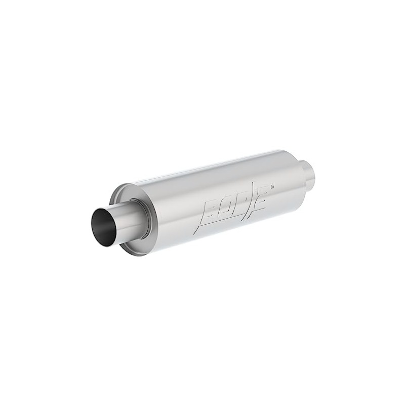 BORLA 401392 XR-1 Sportsman Universal Performance Muffler 2.5" Center / 2.5" Center Outlet 5" Round x 15" Long Body 20" Overall Length Un-Notched Necks Reversible DesignT-304 Stainless Steel