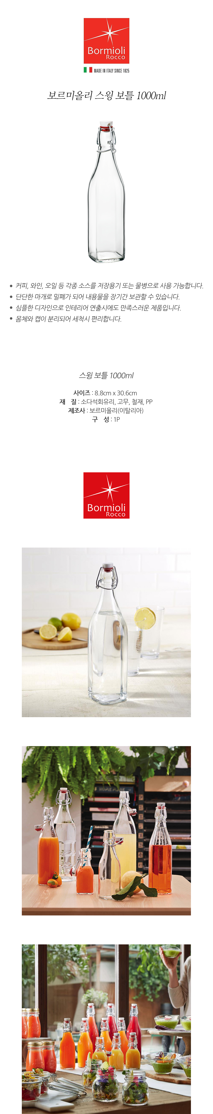 Bormioli Swing Bottle 1000ml / 보르미올리 스윙 보틀 1000ml