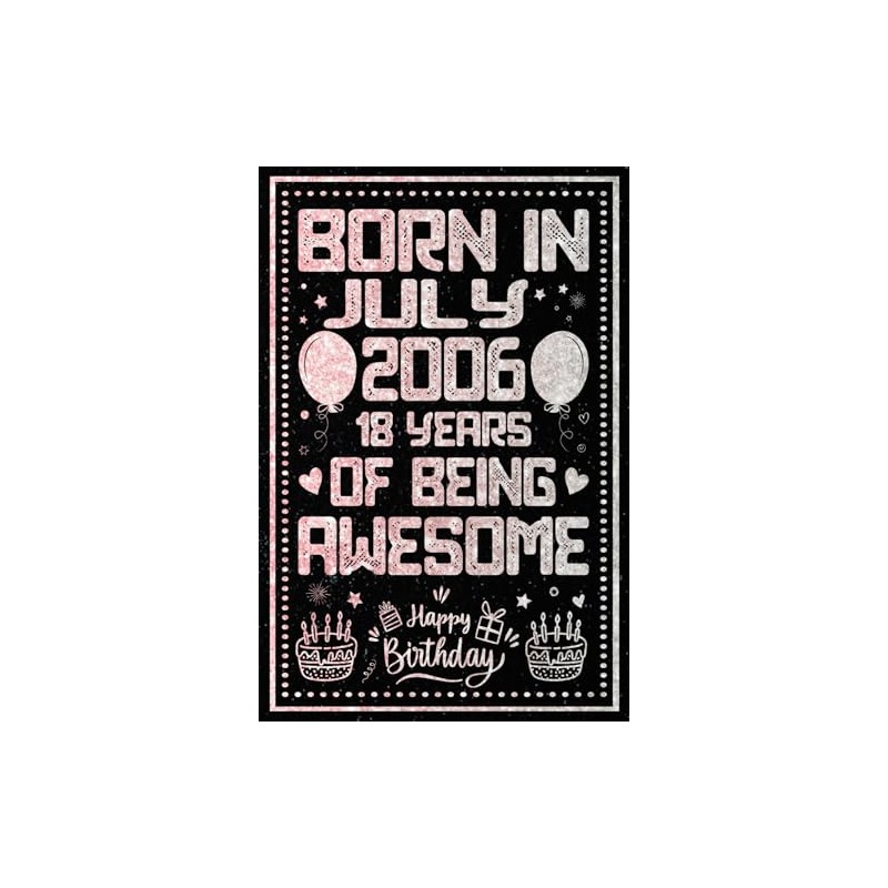Born in July 2006 18 Years Of Being Awesome: Happy 18th Birthday, Notebook Gift for Boys and Girls Born in July 2006, A Unique Birthday Present Ideas for 18 Years, 6x9, 120 Pages