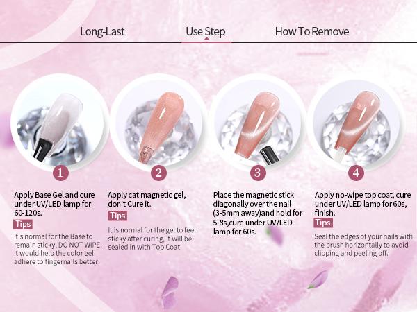 - EASY APPLICATION AND GOOD TENACITY: The Cat Magnetic Eye Gel Nail Polish is long lasting for 21+ days with perfect shine under proper application.Premium formula not easy to peel off - With base gel top coat under the full application process.High durability and intense pigmentation makes it stay last longer and brings you brilliant shine finish.