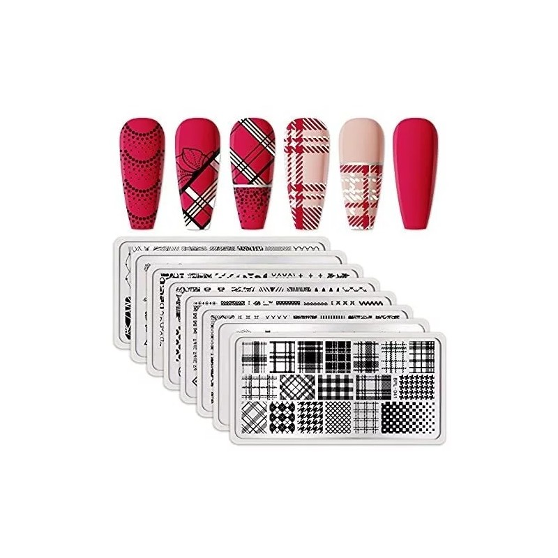 Born Pretty Juego De Platos De Estampado Para Decoración De Uñas Plaid F