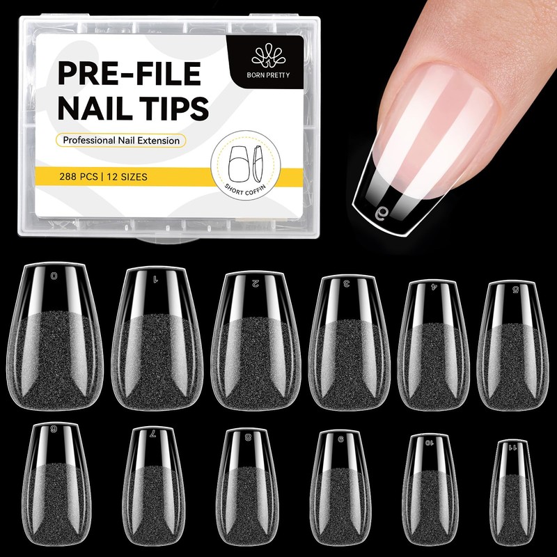- PROFESSIONAL Salon Nail Tip: BORN PRETTY popular nail extension tips are made of superior quality innovative soft gel jelly material. Combine BORN PRETTY false nail with nail polish, impregnated powder, and acrylic powder, you can easily create the perfect nail art without wasting a fortune at your expensive salon