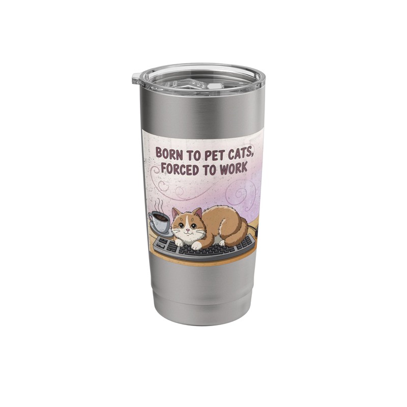 Born to Pet Cats Forced to Work Funny Cat Stainless Steel Insulated Tumbler