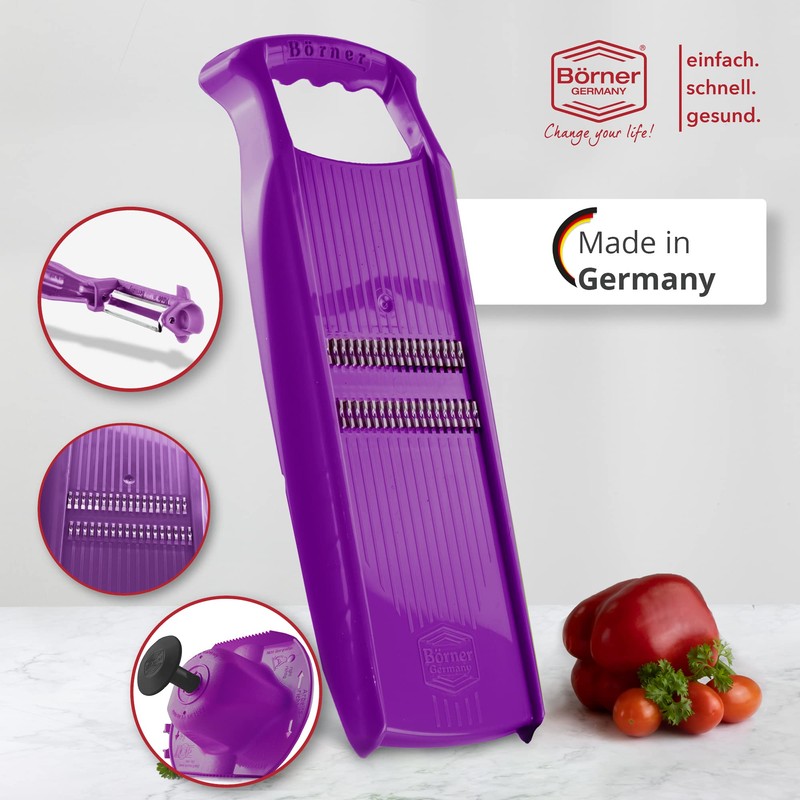 - Quality made in Germany: With professional experience of over 60 years, it is clear that Börner stands for quality and efficiency. So trust the professionals when grating and slicing. The products are characterised by longevity.