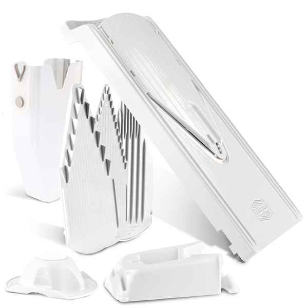 • Box contents: 1 x V-slicer V3 TrendLine vegetable slicer, 1 x fruit holder, 2 x slots (3.5 and 7 mm), 1 x disc and safety slot, 1 x docking station, 1 x slider box. All products can be easily cleaned under running water and are ready to use again. Also ideal as a gift.