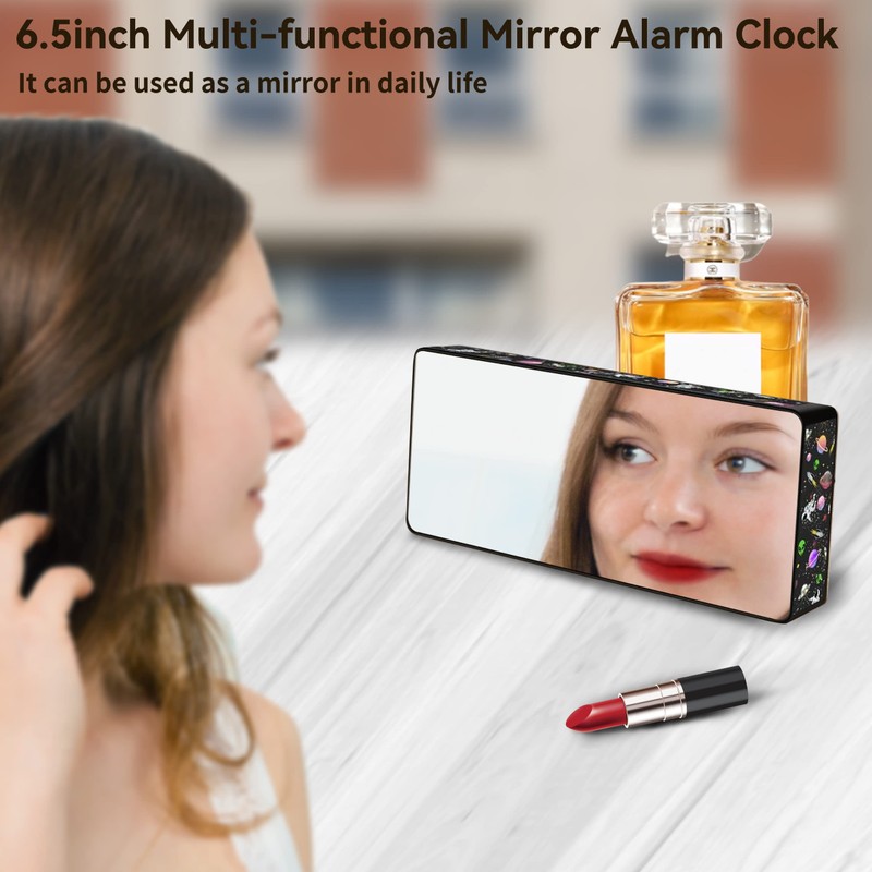 - 【LED Mirror & 5 Normal Display Modes】The Rainbow LED Digital Alarm Clock(SIZE:6.3IN*2.4IN*0.7IN)--- has a large mirror screen,which is easy to read number display and make up. You can adjust your state at any time in front of the modern clock. Multi-function clock for bedroom: clock mode, date mode, temperature mode, night mode, alarm mode.