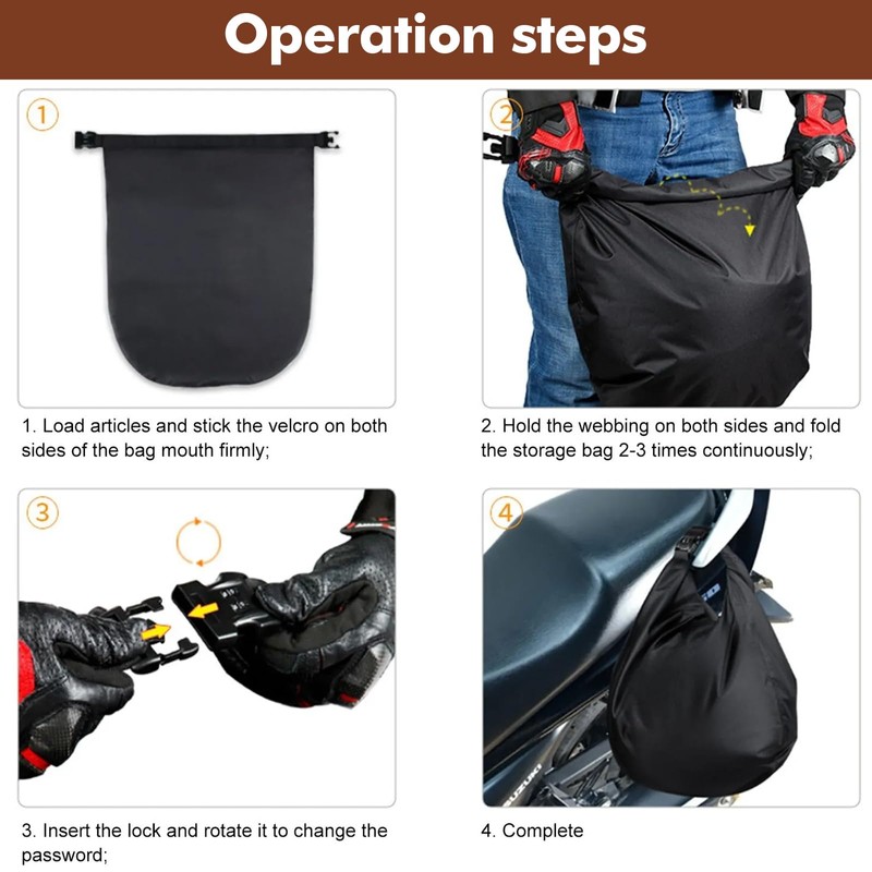 - Easy to lock: the helmet holder storage bag is safe and convenient to use, can be locked directly with the car, and is equipped with a high-quality thickened password lock buckle, which is easy to use.