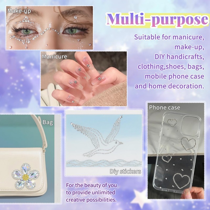 - Multi-Functional Use: Perfect for nail art, makeup, DIY crafts, clothing, shoes, bags, phone cases, and home decor, offering endless creative possibilities.