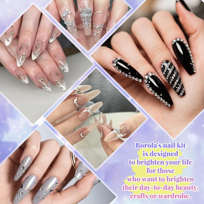Enhance your nail art with the BOROLA Nail Art Rhinestone Kit, designed for professionals and beginners alike.