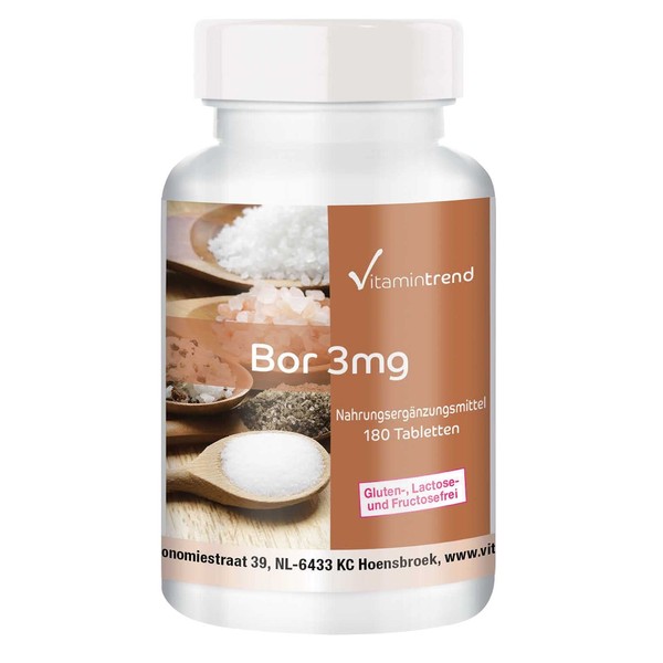 - Vitamintrend made in Germany. One tablet contains: Boron 3 mg - recommended daily dose: 1 tablet with lots of water - highly dosed active ingredient - excellent value for money. 3 mg boron per tablet.