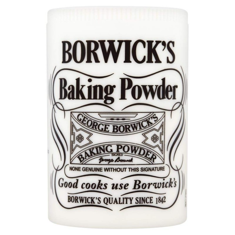 - Baking powder. Good cooks use borwick's. No preservatives. Suitable for vegetarians.