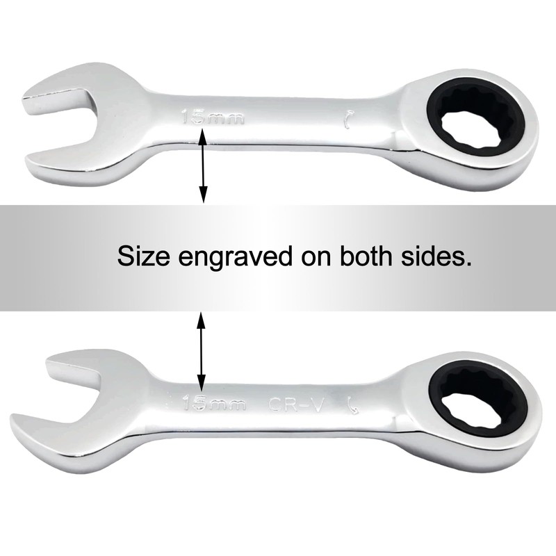 Boryxelina Ratchet Spanner 15mm, Short Metric Chrome Vanadium Steel Small Ratcheting Combination Wrench, Stubby Hand Tool for Bike