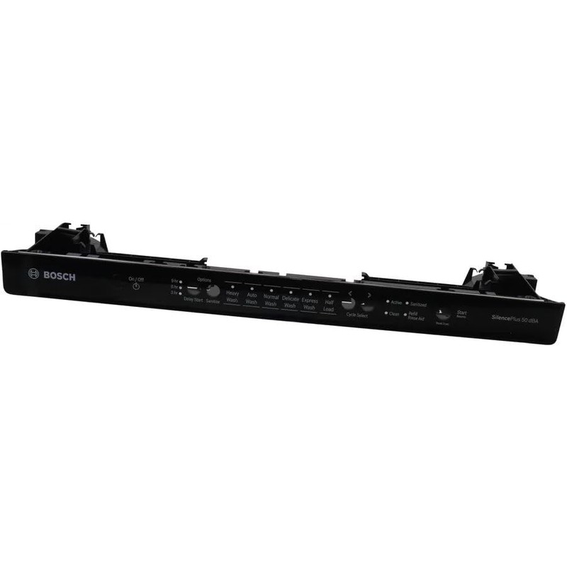 - The Bosch 00689602 houses the control components for the dishwasher, and comes with the active overlay that covers and labels the selections for the electronic control.
