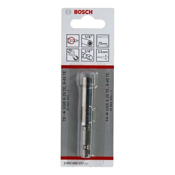 - With permanent magnet and spring ring; In conjunction with depth stop T8 (2 607 002 585) or depth stop T4 (2 607 000 156) for bits with 1/4" external hex shank manufactured to ISO 1173 C6.3