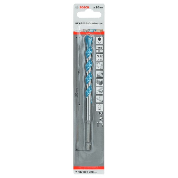 Bosch 2607002780 Multi-Purpose Drill Bits, Hex-9 Multi Construction, 10mm x 60mm x 150mm, Multicolor