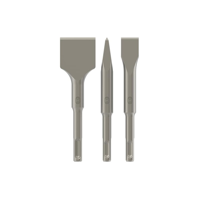 - Box contents: Pro SDS plus-4C chisel set, pointed chisel 140 mm, flat chisel 20 x 140 mm, spade chisel 40 x 140 mm, 3-piece
