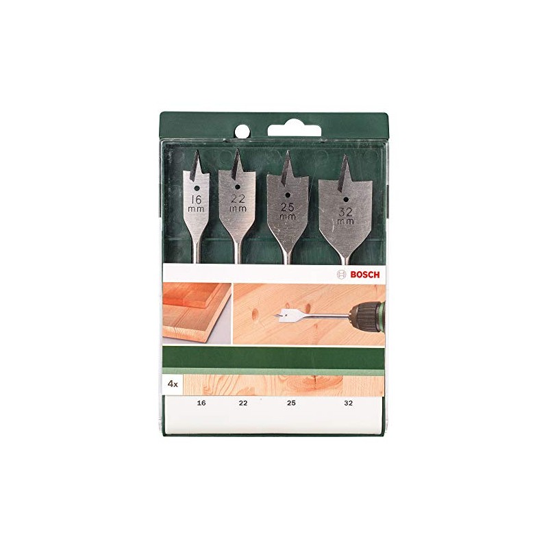 Bosch Accessories 4 pcs. Spade Bit Set (for Wood, Softwood, Acoustic Panels, 16/22/25/32 mm, Length 160-165 mm, with Centring Tip, Dual Cutting Edge, Accessories for Drills)