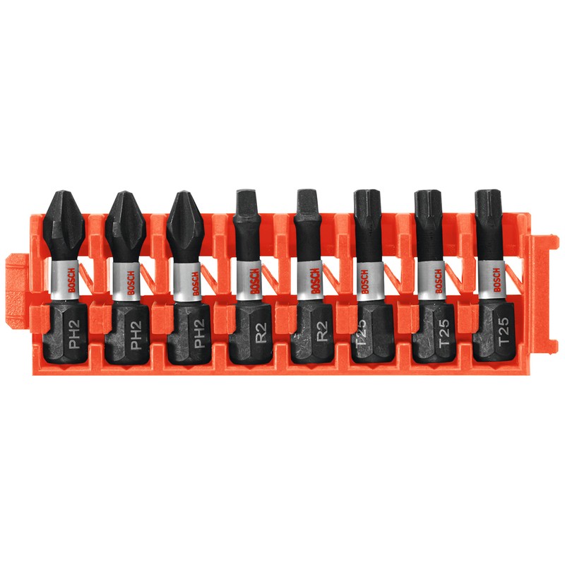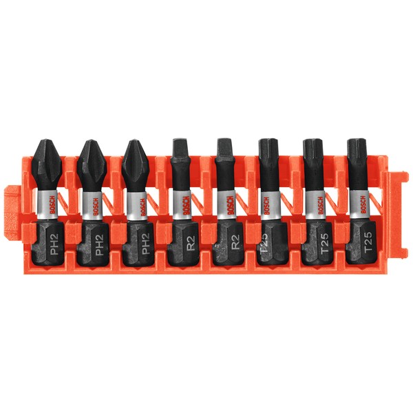 BOSCH CCSV108 8-Piece Assorted Set 1 In. Impact Tough Phillips, Square, and Torx Insert Bits with Clip for Custom Case System