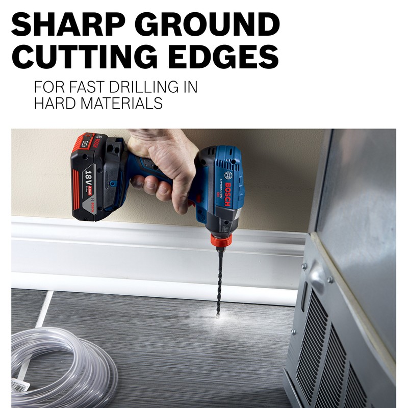 Bosch Impact Drill Bits provide users with significant convenience and are designed to be the best choice for multipurpose bits. These accessories were engineered by Bosch to provide high-quality carbide heads and advanced sharp ground cutting edges for fast drilling in a wide variety of materials. They have been designed with hex shanks for outstanding bit grip, allowing use in hammer drills and impact drivers. These bits are designed for clean starts and easy-to-use applications. The bits have steep flutes for material removal in wood and a variety of other materials, providing outstanding versatility.